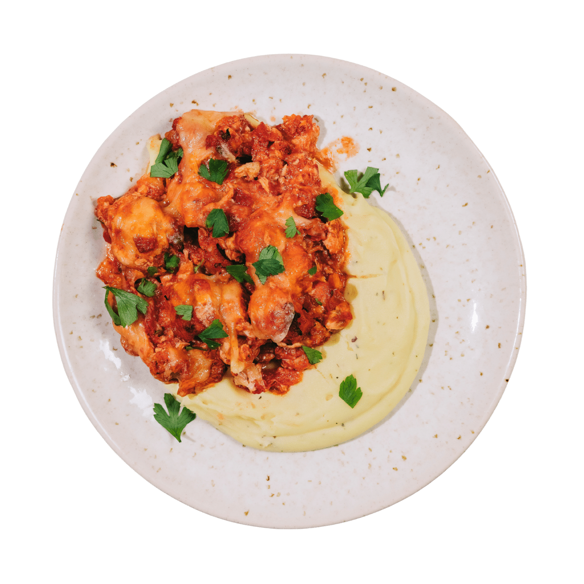 3ª feira: Farfalle com salmão ou Frango com tomate e mozzarella c/ puré