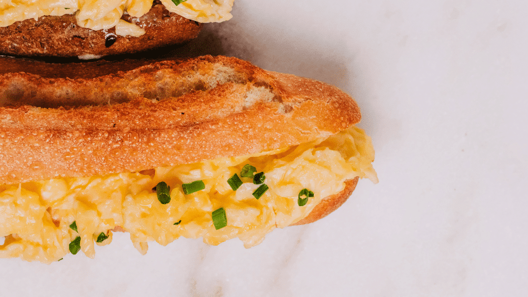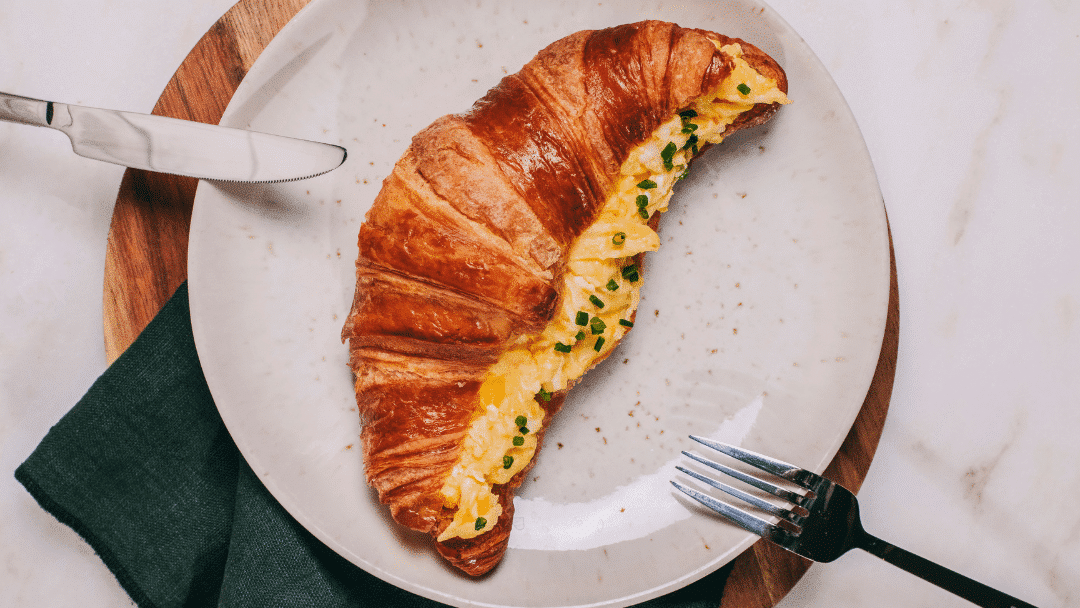 Para quando apetece algo reconfortante, mas que continua a dar energia. O croissant francês com ovo mexido junta textura e sabor.
